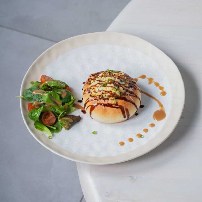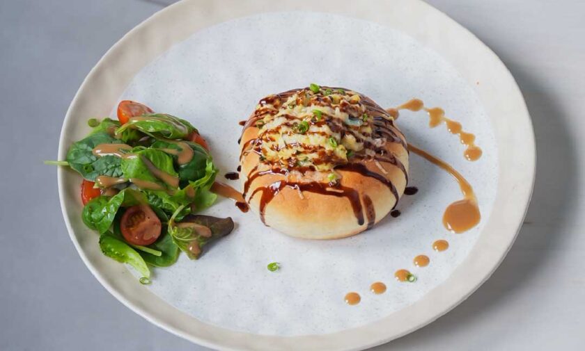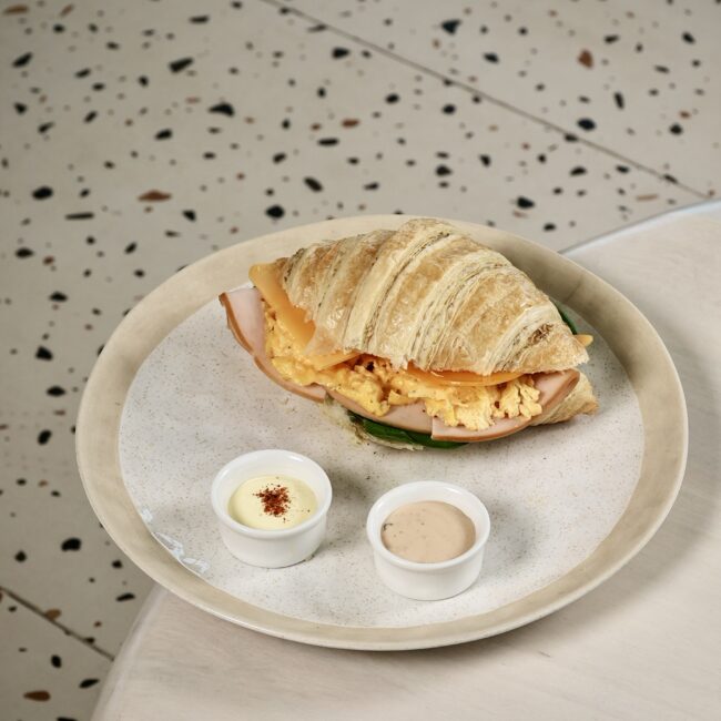 croissant filled with a variety of sweet and savory include cheese, ham, spinach, spices and special sauce.